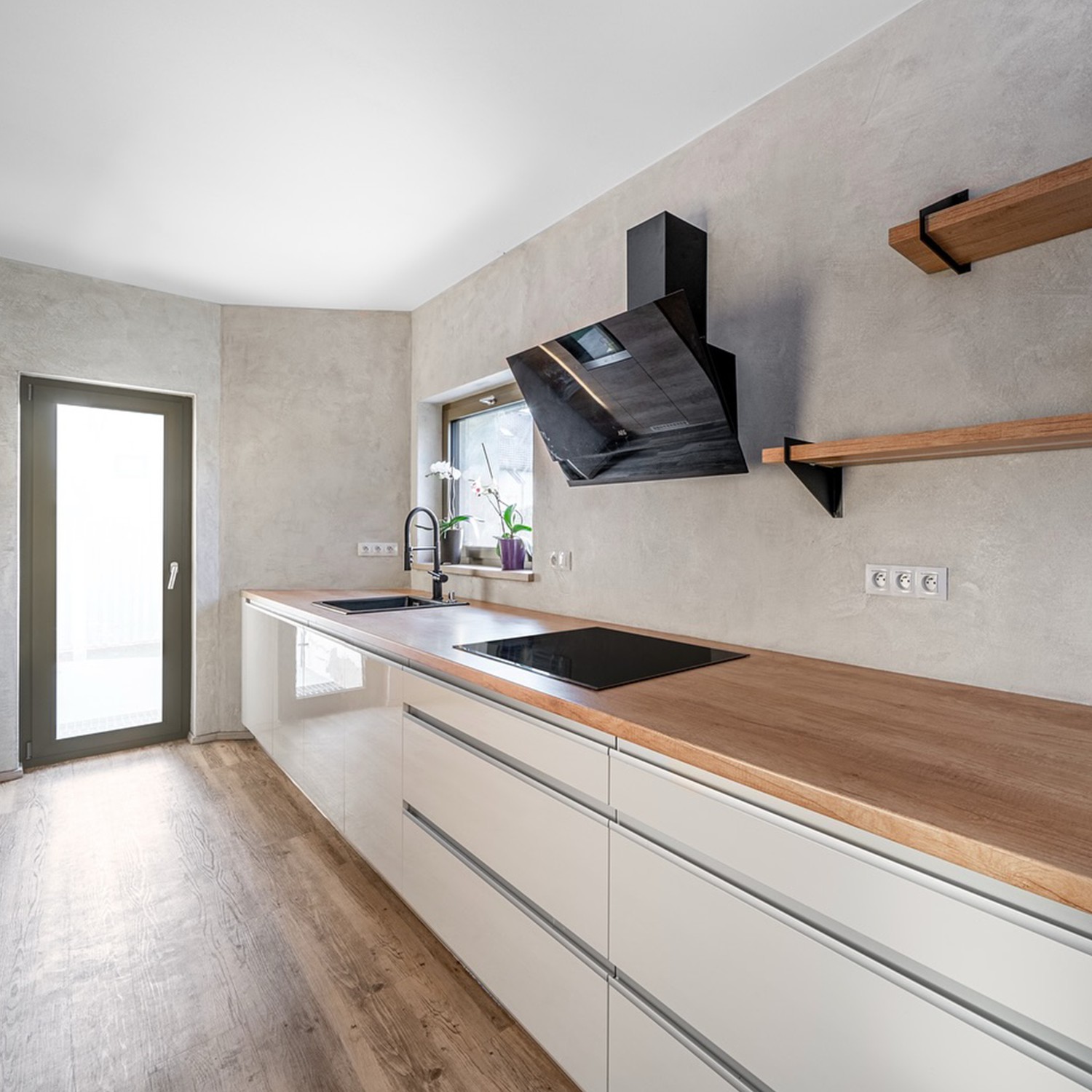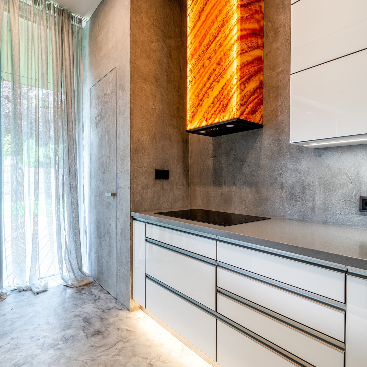 Betonová stěrka je tenkovrstvý dekorativní povrch o tloušťce přibližně 2–3 mm. Nanáší se ručně v několika vrstvách a vytváří kompaktní, bezešvý povrch s jemnou strukturou. Každá realizace je originál – struktura i kresba vznikají ruční aplikací.