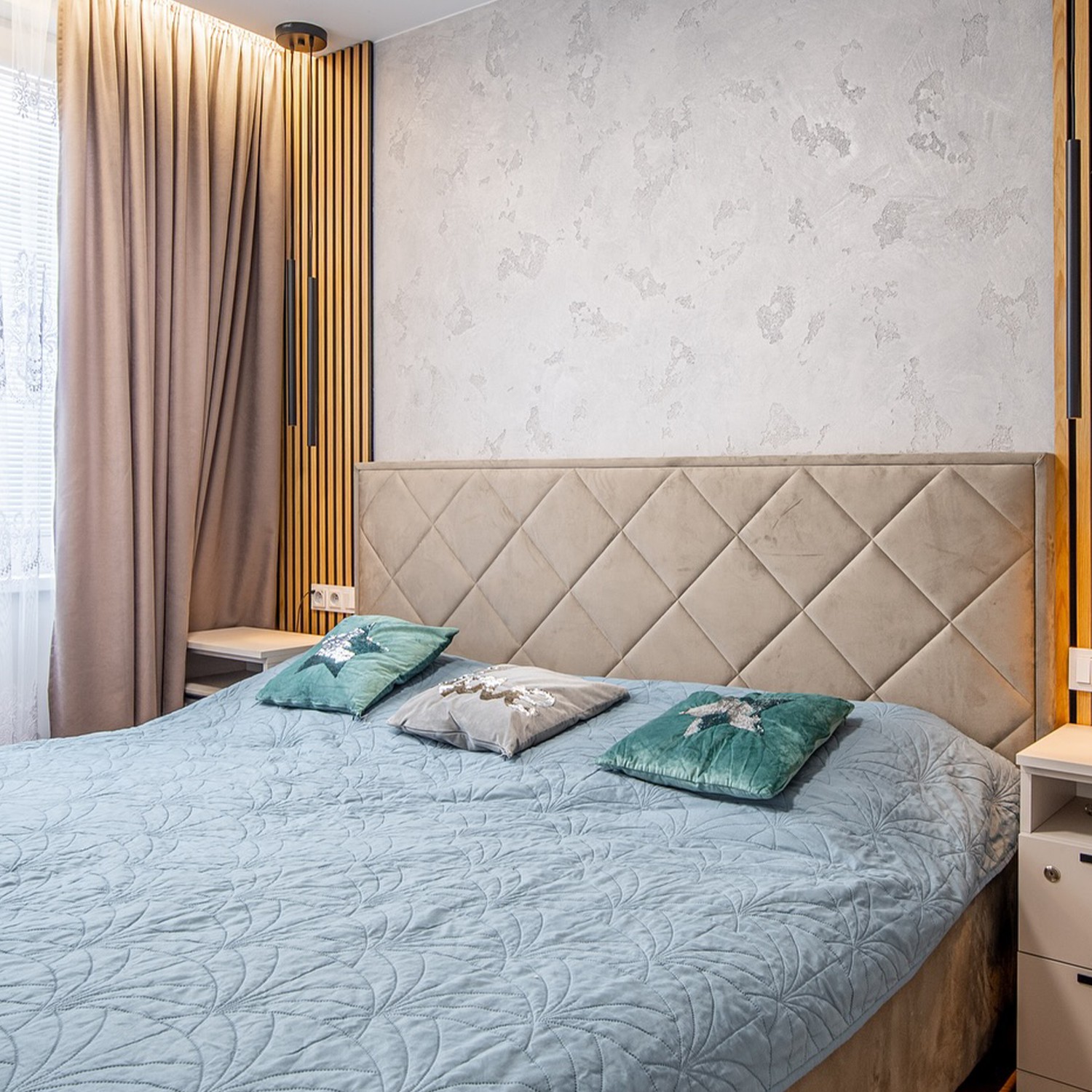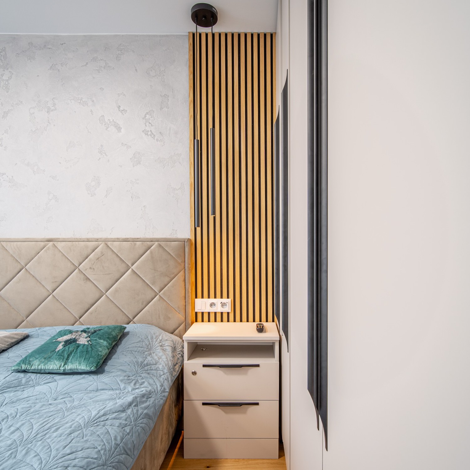 🌍 V téhle ložnici jsme spojili betonovou stěrku, přírodní dřevo a mechovou mapu světa – a vznikl prostor, který nejen dobře vypadá, ale taky skvěle působí na psychiku.